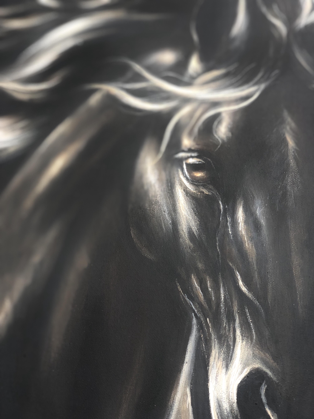 Le cheval semble flotter entre deux mondes : la surface et la profondeur, la matière et l’émotion.