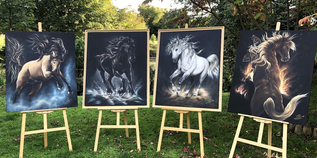 Dans cette série, chaque cheval incarne une force primordiale de la nature : le Feu, l’Eau, l’Air et la Terre.